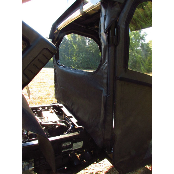 The doors have a frame made of .75″ diameter steel tubing, and they're covered with heavy duty water and UV resistant fabric.