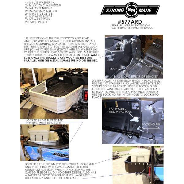Introducing the all new powder coated aluminum rack division front and rear ATV racks made of 11ga aluminum. These durable racks are lightweight and will never rust. Designed to fit many makes and models of ATVs with tubular steel racks. These new A.R.D. racks are powder coated with a wrinkle black textured powder coat designed to match many of the newer ATVs on the market today. These racks will provide many years of work and withstand abuse from the elements. The new solid design will allow you to use your rack with less chances of mud and debris flying onto your cargo from the rear tires. Also, the A.R.D. racks will allow you to carry smaller objects that may have fallen through the traditional older series screen style racks. The A.R.D. series racks are equipped with oval tie down holes for strapping down of any cargo in rear racks. The divide kit (sold separately) will fit all different style rear baskets racks. The rear basket racks are designed with large oval holes for tie down hooks. Also with smaller ovals at the top rail of the rack for cargo nets and bungee cord hooks.