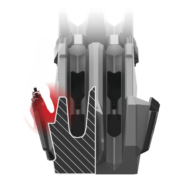 MAGAZINE HOLDER — Extra magazines can be stored separately in divided slot. Magazine and gun do not contact each other preventing scratches.