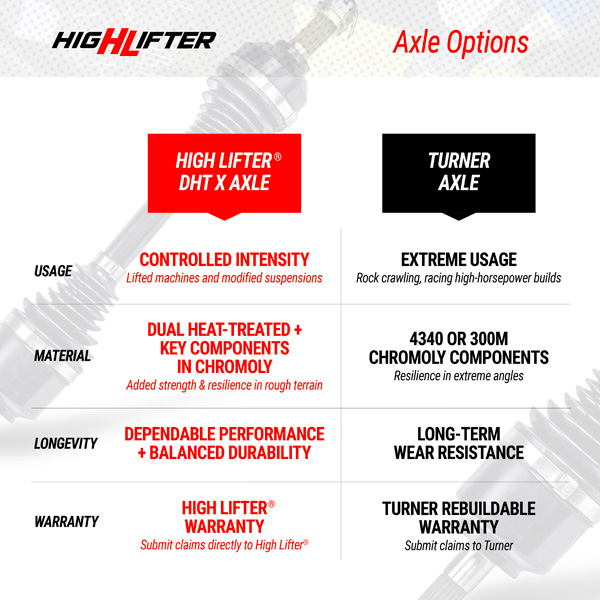 • Customizable Setup: Build your Long Travel Kit to your preferred specifications, with the option of DHT XL or Turner Axles in both the Front and Rear.