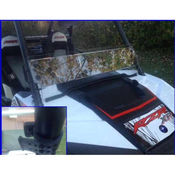 Made from 3/16" thick hard coated Polycarbonate. It is hard coated on both sides. Not only is the hard coating abrasion resistant it is also UV resistant. This is probably the last windshield you will ever buy for your RZR XP1000. It features our "Fast Straps" so you can easily remove it without any tools. Simply unhook the rubber straps. Rubber straps will not scratch your cage. DOT rated and stamped.