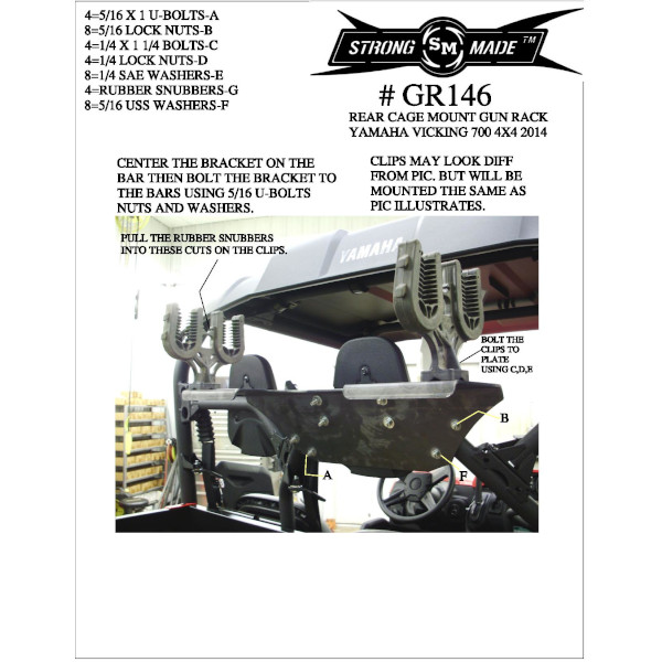 Adding a gun rack to your ATV or SXS is a great way to make your hunt safer and easier. Strong Made offers gun racks to fit many makes and models so be sure to use our what fits your ride tool to make sure you have the absolute best fitment for your ride. All racks are powdercoated black, image shown is a production piece.