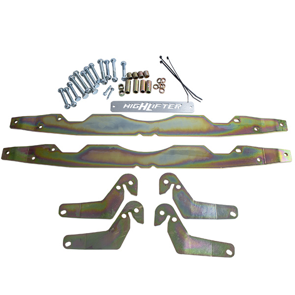 The High Lifter 2.5” Lift Kit relocates the shock mounts to provide additional lift making room for larger tires and tightens suspension. Each Lift Kit part is precision cut and zinc plated for durability and reliability in any environment.