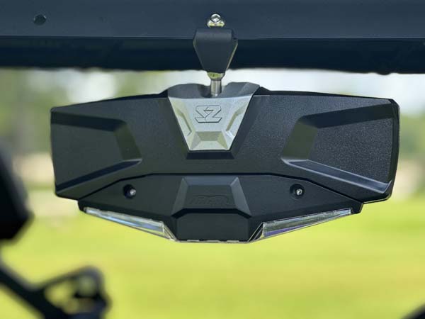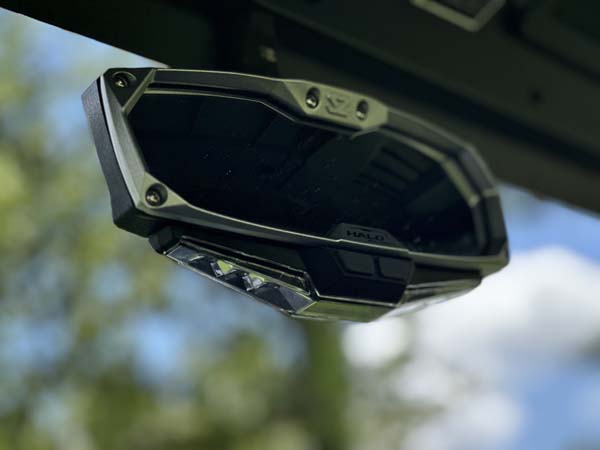 The Seizmik Halo-RA LED Rearview Mirror features multimodal, high intensity RGB LEDs and a high intensity COB (Circuit On Board) LED map light along with a powder coated cast aluminum bezel and an ABS rear housing. The result is a strong, lightweight, and durable mirror with a convenient hands free cab light.