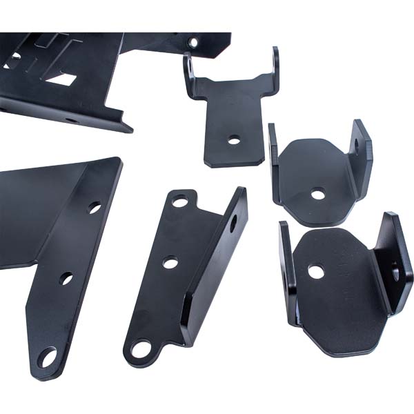 Our kits are designed with 3/16” steel plate and we use 10.9 grade hardware to mount to the frame. The kits are crafted to reinforce the a-arm mounting positions and prevent the tabs from stretching. We have added more gussets to give our kit rigidity, durability, and strength. Increase the longevity of your fame by adding this kit today!