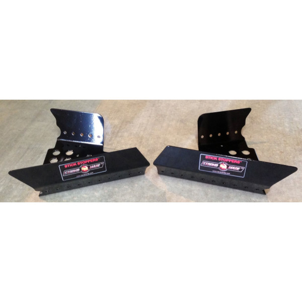 Stick stoppers help prevent one of the most common and costly atv repairs, broken axles. Most broken axles that we see are due to the cv boot being damaged which allows the grease to run out or lets sand and water into the joint which causes failure. Stick Stoppers are a simple concept, they bolt onto your factory A-Arms and provide protection where your bike needs it most. Note: These stick stoppers are intended to work on OEM arms with factory suspensions. In most cases a bracket lift will still work with these arms but may need minor trimming or modification of the stick stoppers to avoid clearance issues.