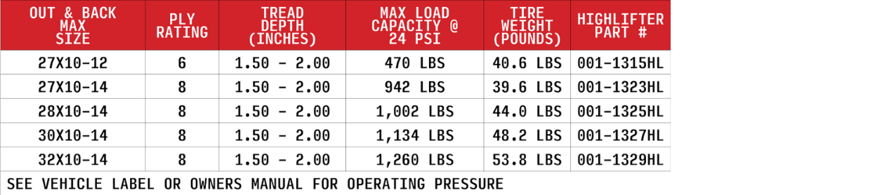 The High Lifter Out&Back Max tires offer exceptional ride quality and off-road performance, making them ideal for many different riding styles. They are smooth for casual trail riders while also packing a bite for those die-hard mudders out there. No matter where your adventures take you, you’ll always get where you’re going with a set of Out&Back Max tires from High Lifter.