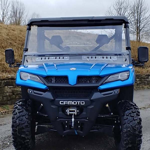 • Summary: With a mile-long list of chores and limited hours in a day, you rely on your CFMOTO UForce 1000 to get you from one destination to the next. Along the way, your vehicle blasts through several obstacles with ease, while everyone in the cab is left vulnerable against Mother Nature's wrath. It’s time to take action against these pesky obstructions! Put that annoying dust to rest when you install the 3 Star MR10 Hard-Coated Two-Piece Front Windshield with Adjustable Vents for the UForce 1000.