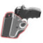 PISTOL HOLSTER — Universal design holds most compact semi-automatic pistols, full-size semi-automatic pistols, and revolvers. Molded rubber housing holds medium to larger guns snug. Recessed hardware does not contact weapon's surfaces, preventing scratching either the magazine's or gun's finish.