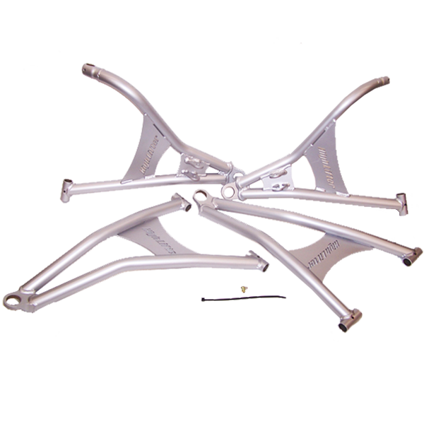 Our arms maximize ground clearance by strategically arching the lower control arms while following the angle of the axle for maximum clearance, axle protection, and visual appeal. Don’t be fooled with too much arch that puts your axles into greater risk of damage. Our precision manufacturing process ensures each control arm installs exactly like the factory arm. Depending on the model, most kits will have the High Lifter logo precision cut into the bracing.