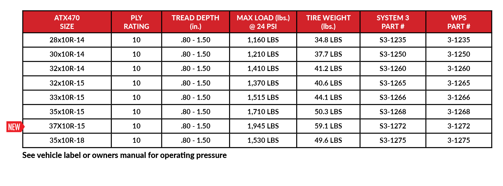 System 3 continues to innovate and elevate all-terrain tire performance. The ATX470 is the next evolution in the all-terrain landscape. With a unique tread design and construction the System 3 ATX470 is sure to get you where you need to go.